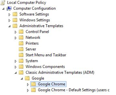 - Select chrome.adm. The folders appear under Administrative Templates or Classic Administrative Templates, depending on your version of Windows: