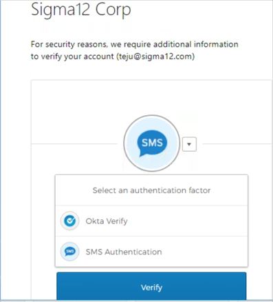- After entering your credentials, you're either redirected to your ADFS sign-in page or prompted for Okta MFA if you started with IdP-initiated SSO.